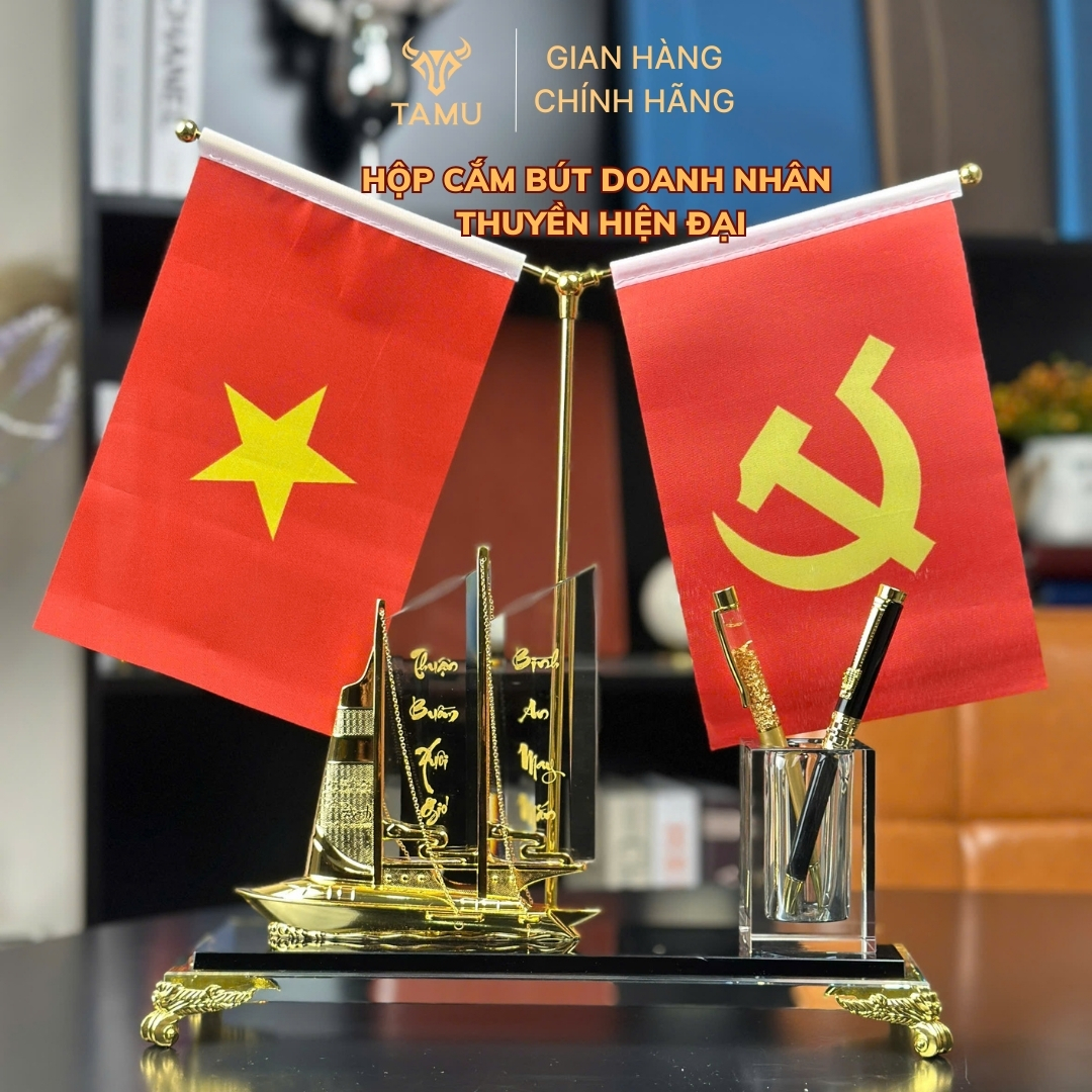 Hộp cắm bút doanh nhân Thuyền Buồm Hiện Đại - Quà tặng cao cấp mạ vàng 24K kết hợp pha lê K9, thiết kế tinh xảo, mang ý nghĩa phong thủy sâu sắc, thể hiện đẳng cấp và thăng tiến trong sự nghiệp.